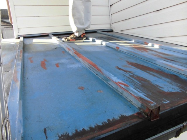 錆の影響を受け、細かい穴開き・塗膜剥がれ・釘浮きが目立ち、瓦棒も劣化している状態でした。