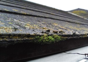 コケの胞子が屋根に付着し、乾燥しにくい湿気の多い部分から繁殖し、そこからコケの範囲が拡大していってしまい、コケの生えた屋根は激しい劣化が見られることも多いのです・・・
