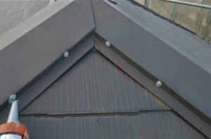 棟部分にあてた棟板金は、横から釘やビスで固定されておりこれらが浮いてきてしまうことが原因で劣化症状に繋がることが多いのです。