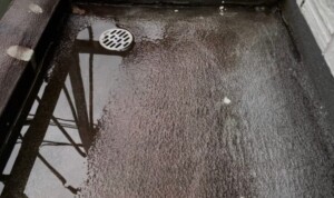 今回確認してみると・・・ベランダに水が溜まっておりました