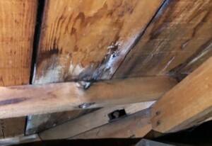 原因は、屋根から雨漏りが発生していて、屋根裏まで雨水が浸透してしまい、カビが発生していたのです