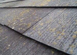 ・スレートに生えてしまったコケに溜まった雨水は蒸発するまで時間がかかり暫く常に湿った状態になる。
