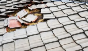 屋根材は24時間365日外気にさらされ、雨風の影響を常に受けています。その為日が経つにつれて劣化は進んで行くのは当たり前であり、ちょっとした衝撃で屋根の下地から外れてしまうようになるのです。