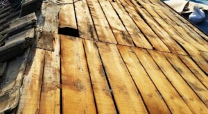 ヒビ割れから建物内部に水が浸入すると、野地板が腐食してしまいます。