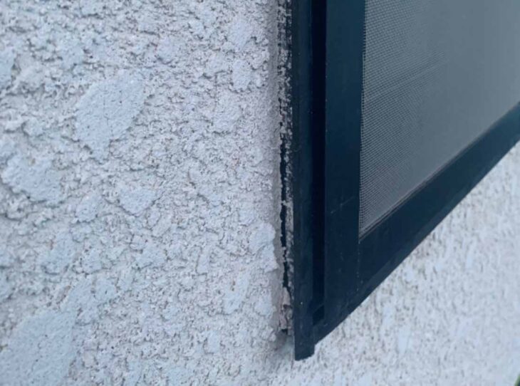すぐ上にはベランダがあるので点検するとサッシと壁のつなぎ目の浮きから雨水の侵入が確認できました。