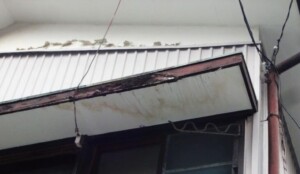 屋根は幸いにも酷い雨漏りは見受けられませんでしたが、庇は雨漏りしていました。庇の雨漏りは、庇と外壁との取り合い部から漏れることが多いです。
