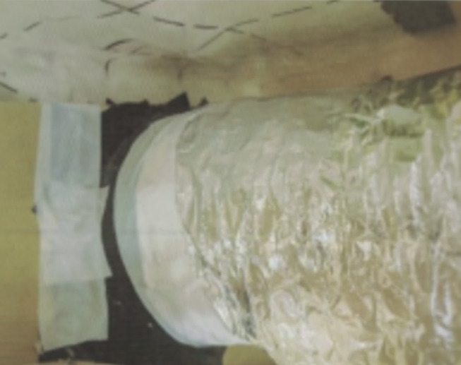接続部のフレキシブルバンドによる結束後に、ダクト熱被覆材を二重にして断熱を補強します。
