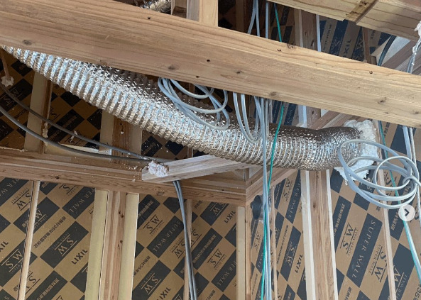 結露防止の観点から、外気ダクト(給気)と排気ダクトについては、それが断熱空間内と非断熱空間内のどちらに設置されているかを問わず、断熱被覆(断熱材)の施工が必須です。残念ながら、「断熱空間内にあるダクトは断熱が不要である」という誤解を持つ住宅会社が依然として少なくありません。