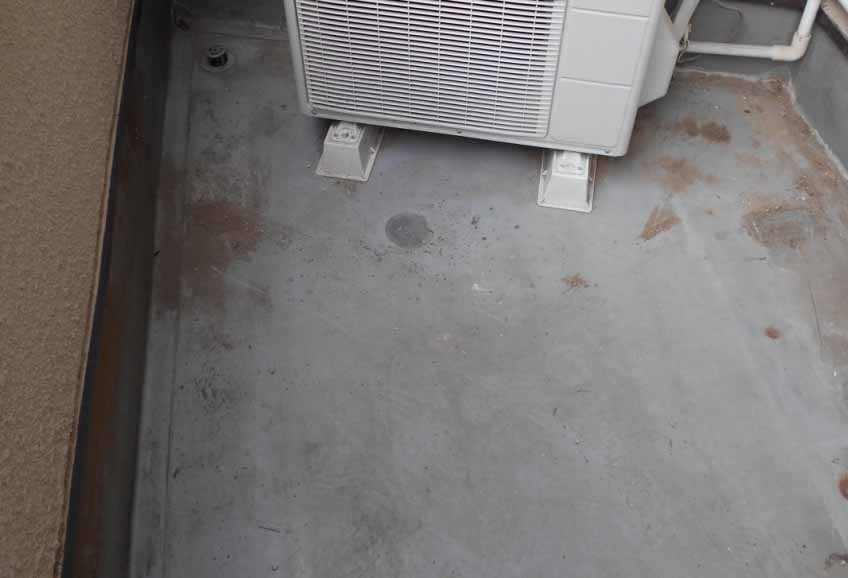 お客様が気にしていたベランダの床は平らで勾配がほとんど無いため、建物の中でも雨水がたまりやすい場所です。