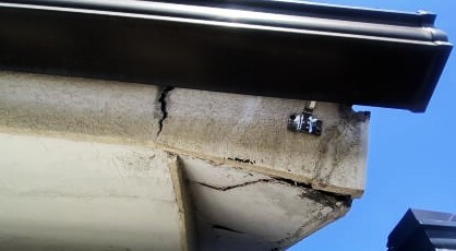 下から見てみると、雨染みもしっかり確認されコンクリートや軒天劣化が酷く大変危険です。