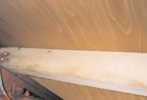 練馬区のH様からご相談を承りました。H様邸の東面に位置する1、2階居室のフローリングに濃い黒染みがみつかったそうです。H様邸は木造住宅で築10年になります。 断熱材にグラスウールを使い、ポリエチレン製の防湿シートを別張り …