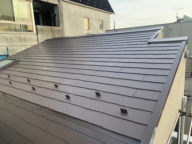 屋根の錆びが気になり始めたため、この度、屋根の塗り替えをご依頼くださいました。 屋根塗装は、美観の回復はもちろん、屋根材を保護し、その寿命を大きく延ばすという重要な役割も担っています。 屋根塗装に最適なタイミングは、いく …
