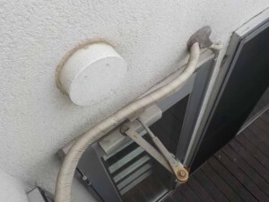 足立区T様邸では洗面所の壁に雨水の染み跡を発見したそうです。 思い返すと大雨と暴風のあとから目につくようになったとの事で調査してみると、2階のベランダにあるエアコンホースが貫通している壁面のつなぎ目部分に不具合を発見しま …